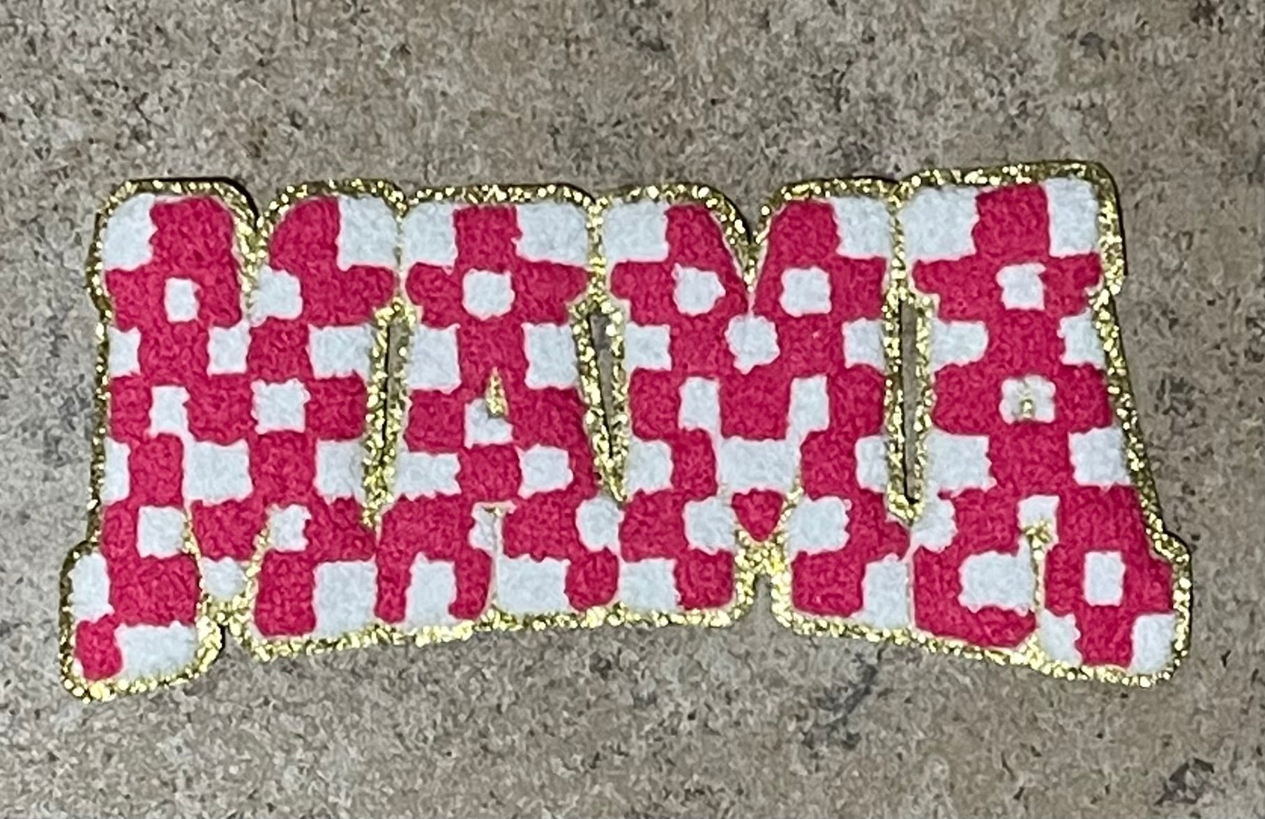 Mama Iron On Patch (Checkered Design-Assorted Colors)